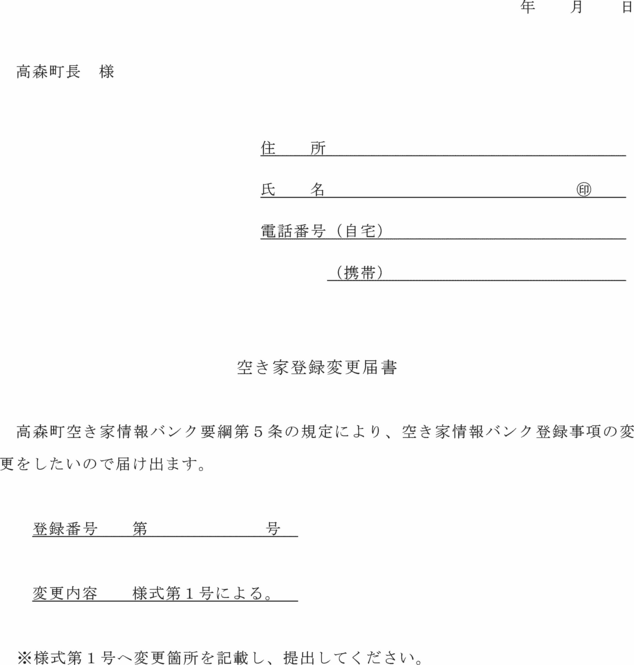 第5条 前条第3項の規定による登録の通知を受けた空き家登録者は、当該登録事項に変更があったときは、速やかに、高森町空き家登録変更届出書(