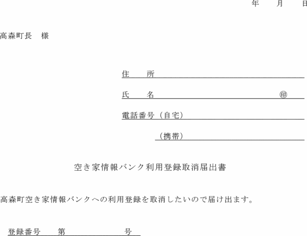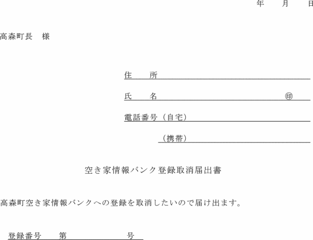 (1) 空き家登録者から高森町空き家情報バンク登録取消届出書(
