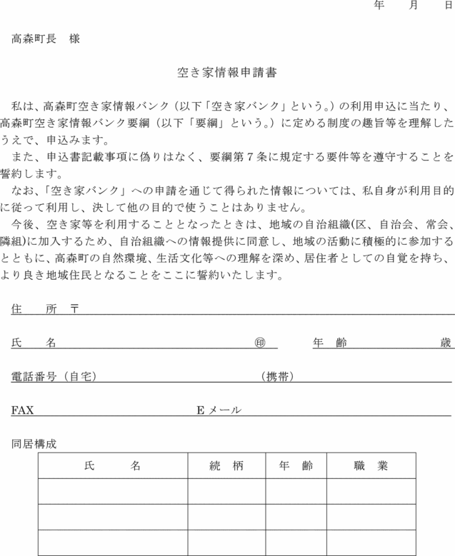 第4条 空き家情報バンクにより空き家に関する情報の登録をしようとする所有者等は、高森町空き家登録申請書(