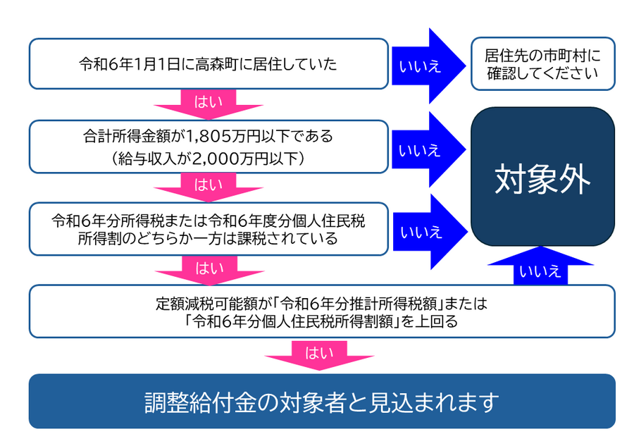1)令和6年分所得税が課税される見込みの方、または、高森町から令和6年度個人住民税所得割が課税されている方。